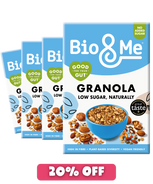 Your search for the perfect low-sugar granola ends here! With a softer biscuity-crunch, this scrummy low-sugar granola makes an ideal breakfast or snack for those who prefer a more subtle sweetness. Packed with 15 plant-based foods and plenty of fibre, you're getting all the gut-goodness without having to compromise on flavour. A win-win, we'd say!