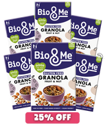 Fuel your day with our Fruit & Nut Granola, packed with 13 nutrient-dense plant-based foods and an impressive 16g of protein per 100g. This delicious blend delivers plant-powered goodness to support your body, especially during menopause, as it proudly features the universal shopping symbol for menopause-friendly products.