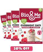 Our Raspberry & Coconut Overnight Oats are the perfect choice for a quick, easy, and gut-loving breakfast, packed with 14 of your weekly 30 diverse plant-based foods and ready in just 3 minutes. Combine with your choice of milk or why not mix with Bio&Me Kefir for the ultimate gut-loving breakfast.