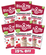 Our Raspberry & Coconut Overnight Oats are the perfect choice for a quick, easy, and gut-loving breakfast, packed with 14 of your weekly 30 diverse plant-based foods and ready in just 3 minutes. Combine with your choice of milk or why not mix with Bio&Me Kefir for the ultimate gut-loving breakfast.