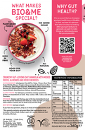 I have been having Bio&Me granola for breakfast for 18 months and believe that it has greatly contributed to my increased gut health. In the past I suffered from acute IBS at least one a month, causing pain, embarrassment and the worry of always having to figure out where the nearest loo was!